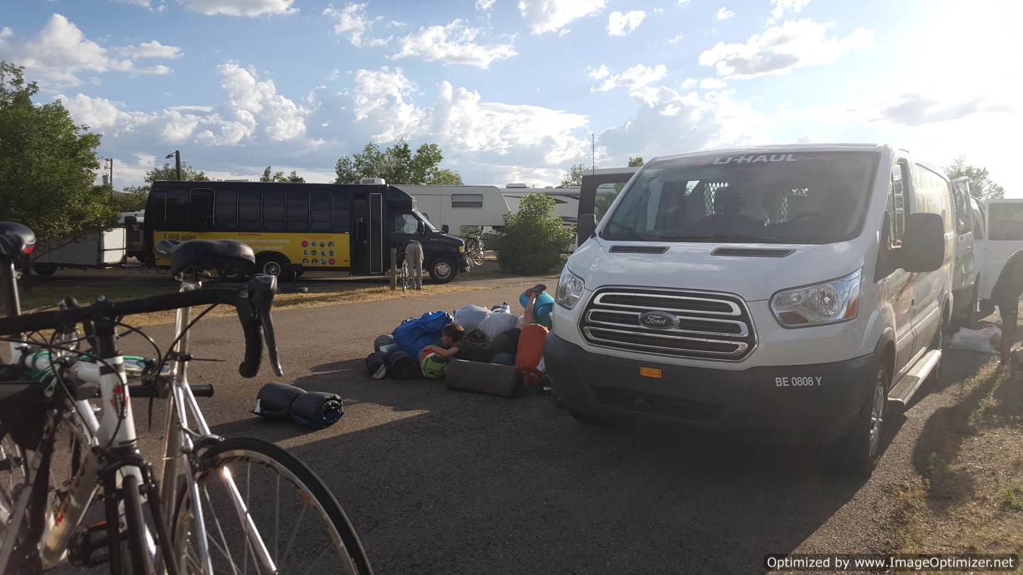 Wyoming brought many cows and also falls for two of our riders: Annie and Laurene. Annie’s bike went over the rubble strips on the side of the road, and she lost control. This fall, although it hurt Annie, it also brought our team closer together!