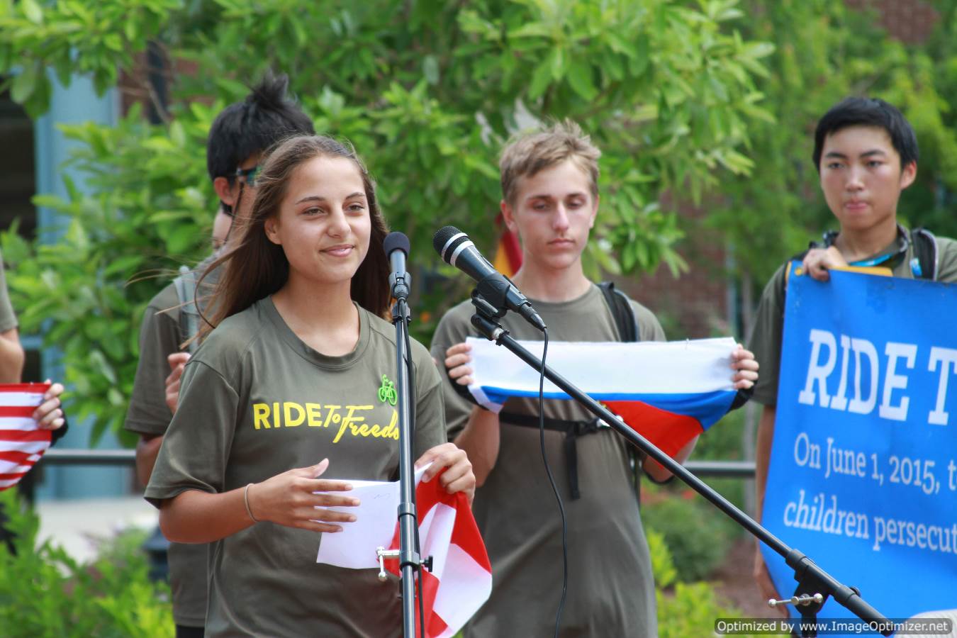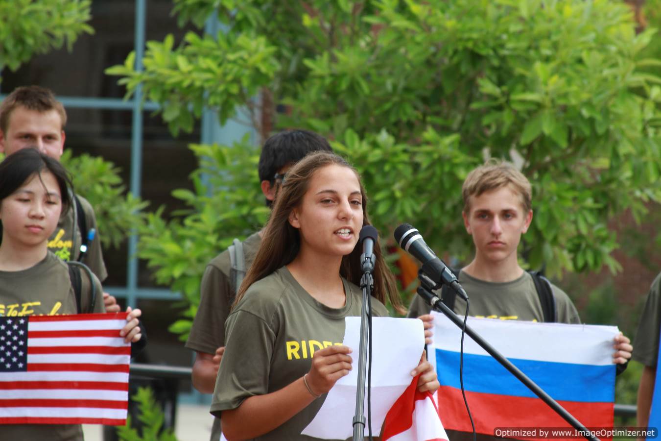 We left the house with the dolls and made our way over to a rally and press conference. There, we were all very happy to see a banner of Missouri that was signed by all of our supporters. Then for lunch we had Panera boxes with chips, sandwiches, and chocolate chip cookies. Next to our picnic tables, we saw a squirrel who ate right next to us. At night, we went to a KOA to camp out for the evening.